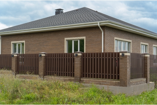 Ограждение такого типа визуально обладает легкостью, оно продуваемо, не обладает парусностью, оставляет участок частично открытым, но при этом максимально защищённым.