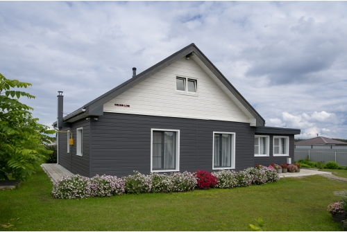 - В отличие от облицовки фасада деревом, металлический сайдинг «ЭкоБрус GL» прост в монтаже и не требует дополнительного послемонтажного ухода.