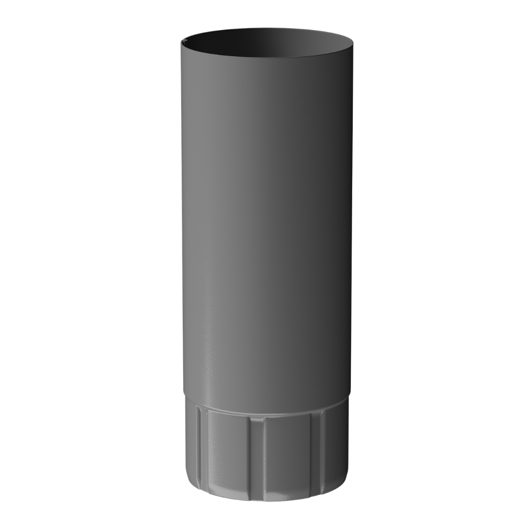 Труба из оцинкованной стали покрыта полимерным покрытием, окрашенным в цвет «Графит». Прочные водостоки универсального серого оттенка будут сочетаться с любыми строениями. Как полимерное покрытие, так и оцинкованная сталь имеют высокую коррозийную устойчивость. Такое сочетание материалов позволяет гарантировать отсутствие сквозной коррозии на срок 35 лет.